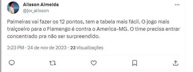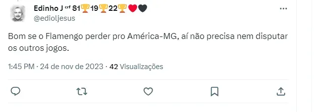 Para seguir nessa direção, o Rubro-Negro do Rio de Janeiro precisa ir bem nas rodadas restantes. No próximo domingo (26), os comandados de Tite visitam o América-MG, equipe já rebaixada para a Série B.