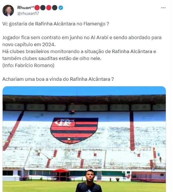 O comunicador informou que há clubes brasileiros monitorando a situação de Rafinha — e também clubes sauditas de olho nele para a próxima temporada e o Fla pode ser destino.