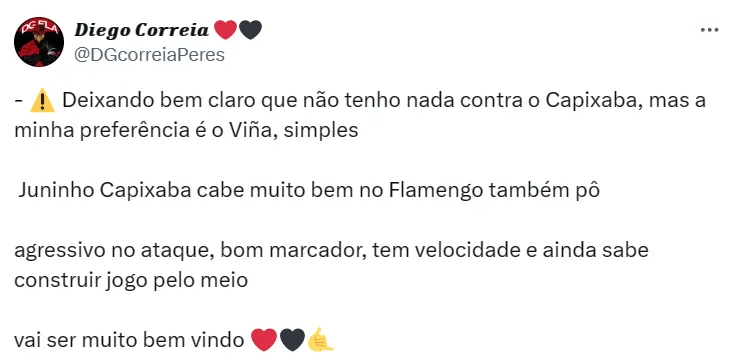 Agora com Matías Viña contratado e ganhando espaço com Tite (fazendo sua estreia no time titular na última semana), Capixaba não é mais citado nos corredores da Gávea. No entanto, falou sobre os rumores do passado.