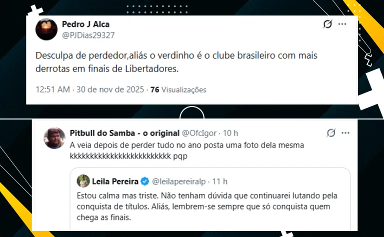 Após o resultado final e algumas entrevistas, a presidente Leila Pereira, do Palmeiras, resolveu se manifestar em sua redes sociais e publicou o seguinte texto sobre o resultado em Lima: