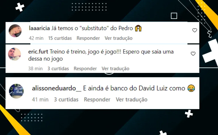 Outro torcedor ponderou: “E ainda é (Léo Ortiz) banco do David Luiz, como”. Outro flamenguista foi mais enfático: “Treino é treino, jogo é jogo!!! Espero que saia uma dessa no jogo”, escreveu.