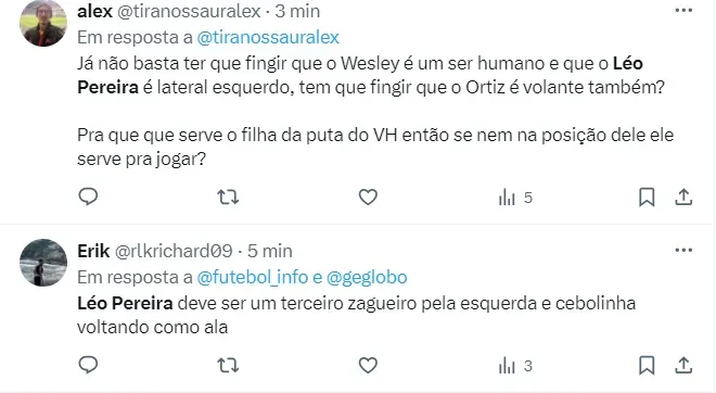 E com o treino na tarde desta terça-feira (11), no Ninho do Urubu, Tite praticamente confirmou que Léo será o lateral esquerdo no jogo contra o Grêmio. Isso porque o jogador treinou nesta posição durante a penúltima preparação para o jogo, conforme informações do jornalista Venê Casagrande.
