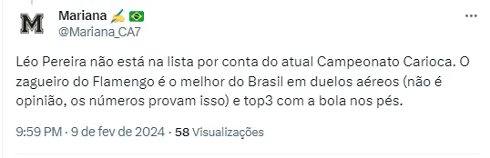 O camisa 4 deverá mais uma vez ser escalado entre os 11 iniciais do treinador da Seleção Brasileira nas últimas duas Copas do Mundo. A impressão que fica é que Léo Pereira é uma referência de Tite no atual time do Clube Carioca.
