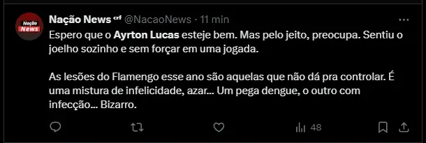 No Fla-Flu, o lateral-esquerdo sentiu a lesão em um lance sozinho. Após correr para afastar a bola, o jogador começou a mancar e caiu no chão. O atleta saiu de campo sem a ajuda da maca.
