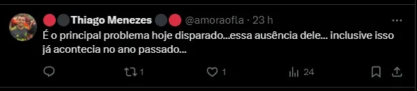 Em 2024, o chileno disputou 17 partidas, 16 entre os titulares, com uma assistência anotada. Sem o atleta à disposição, o meio de campo do Flamengo mostrou desorganização, principalmente no momento de recomposição e marcação.