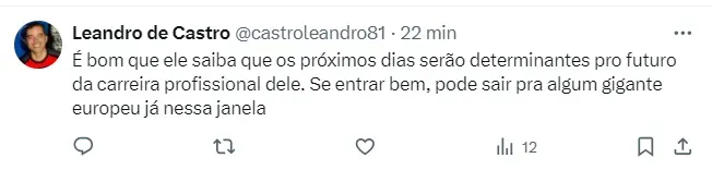 E a tarefa não é fácil: o meio-campista deve substituir Giorgian De Arrascaeta, um dos principais jogadores do Flamengo. Para se preparar adequadamente ao jogo, é que Lorran retornou, se reapresentando no Ninho do Urubu neste domingo (9).
