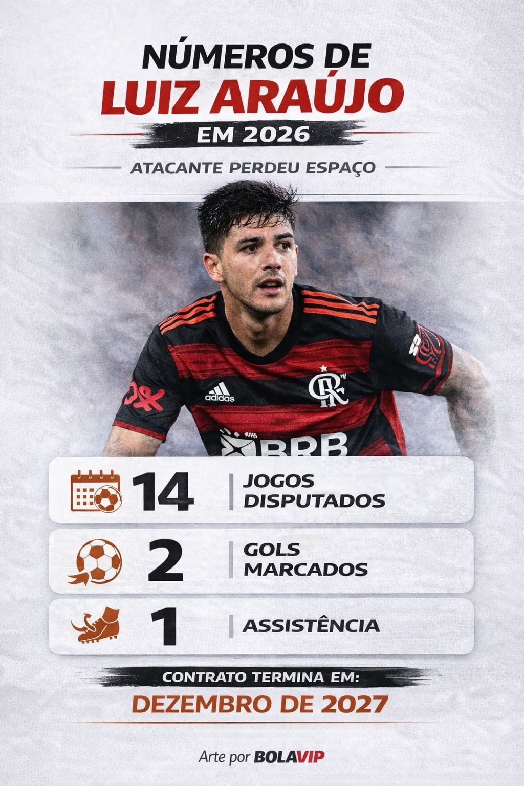 Números de Luiz Araújo em 2025 x 2026 no Flamengo