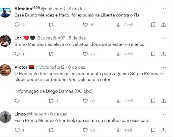 Diogo Dantas, do O Globo, trouxe a informação de que Flamengo tem conversas com Léo Ortiz e também pode contratar Bruno Mendez, em fim de contrato como oportunidade de negócio.