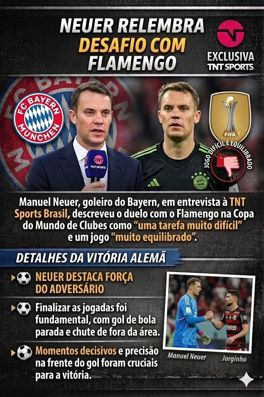 Em entrevista à TNT Sports Brasil, o goleiro Manuel Neuer, titular absoluto dos alemães, que esteve em campo no duelo contra os cariocas, relembrou detalhes e, inclusive, fez elogios ao Rubro-Negro.