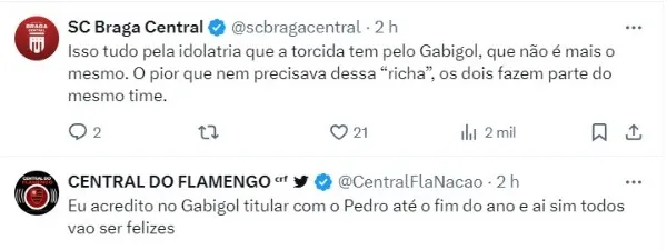 “Em Aracaju, nessa sequência de 3 a 0 que o Flamengo está entrando aí. Estava tudo, o Pedro fez três gols no jogo, mas a torcida começou a pedir pelo Gabigol. Não começou a não querer o Pedro, ali era até diferente, a torcida não estava dizendo que não queria ver o Pedro, mas que queria ver o Gabigol em campo. É a torcida dizendo: ‘Quero o Flamengo com o Gabigol, o camisa 10’. Enfim”, finalizou.