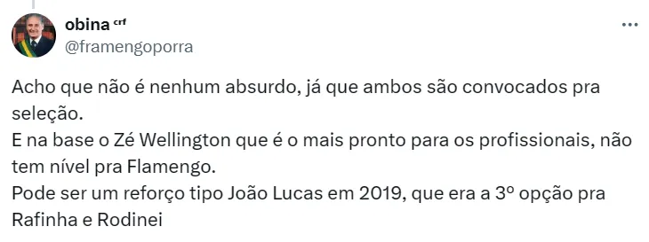“Flamengo sempre monitora alguns jogadores. A gente tem essa dificuldade nas convocações das seleções, até porque se você trouxer jogador, possivelmente vai estar convocado por outra seleção e você vai perder o jogador da mesma maneira”, refletiu.