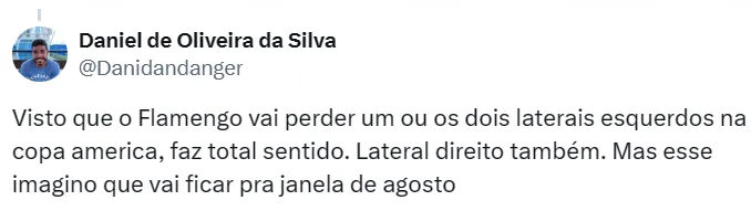 Neste contexto, a necessidade de contratar um lateral-esquerdo se faz urgente no Rubro-Negro, que encontra dificuldades no mercado da bola devido aos altos valores envolvidos nas negociações.