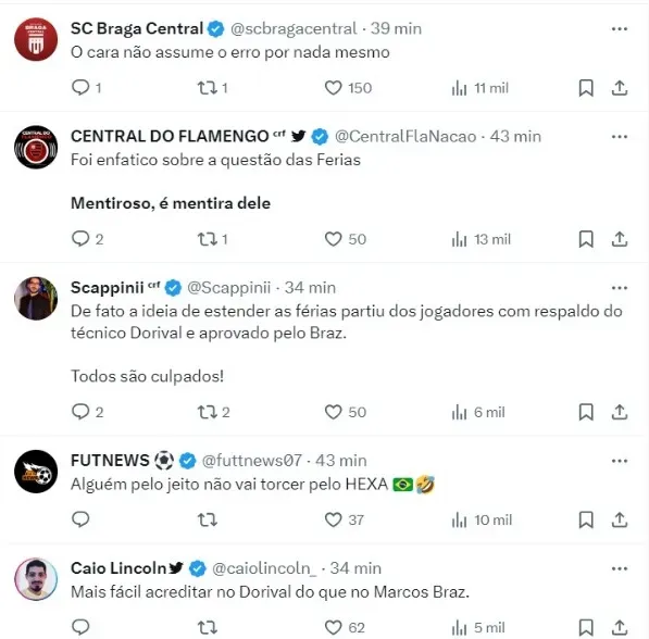 “A única pena que tenho nisso é: por que levou 12 meses para se posicionar? Porque o questionamento da imprensa em relação a por que a gente voltou no dia 26 de dezembro foi desde sempre. Aí depois que ganha do Flamengo, numa final, aí vai se posicionar. Por que não falou antes? O tadinho e o coitadinho no futebol brasileiro navegam bem”, disse Braz.