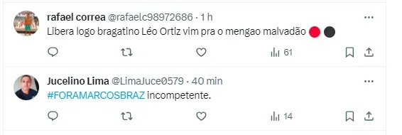 Julio Miguel Neto finalizou informando a insatisfação do Red Bull Bragantino: “A forma de pagamento não agradou o Massa Bruta e o Flamengo volta a ter rodadas de negociações. Os clubes seguem negociando e o Flamengo segue tentando a contratação que é um pedido do técnico Tite”.
