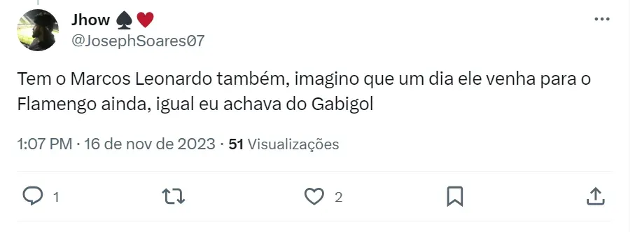 No Brasileirão, o Flamengo aparece na sexta colocação, com 57 pontos, e ainda precisa se classificar à Copa Libertadores de 2024. Restam cinco jogos na competição nacional para alcançar este objetivo.