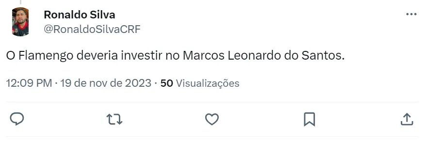 “Ele quer ter uma experiência europeia e sua hora chegará neste inverno (europeu)”, afirmou Rafaela Pimenta, agente de Marcos Leonardo, em entrevista ao site calciomercato.com.