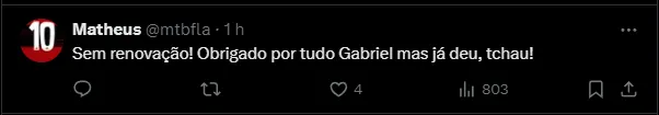 “Por razões óbvias, vamos tratar isso (possível renovação) depois do julgamento que vai ser no dia 7. Então, assim, o Gabriel é do Flamengo, tem contrato até o final do ano. Numa situação normal, já deveria e estaria com contrato renovado“, disse aos jornalistas presentes no estádio.