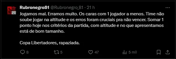 O Flamengo fez a sua estreia na Libertadores de 2024, empatou por 1 x 1 diante do Millonarios, lá em Bogotá, no Estádio Nemesio Camacho. A equipe de Tite, mesmo com um a mais em campo, sofreu com a altitude de 2.625 m.