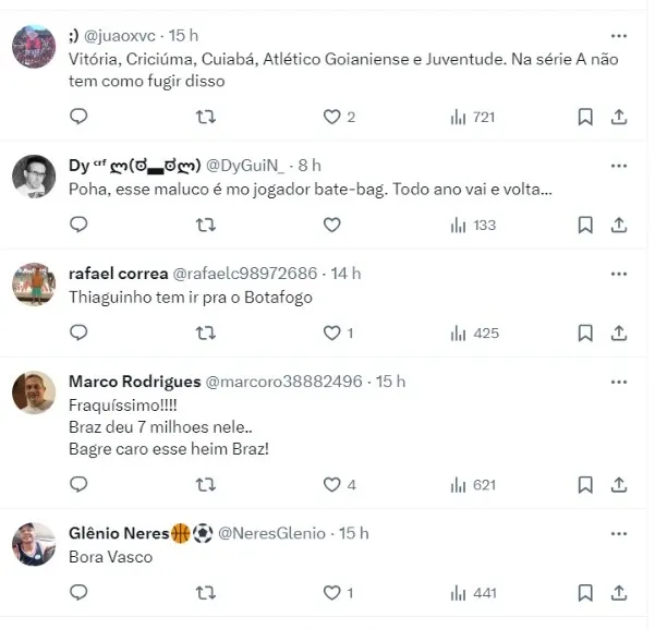 O clube carioca recusou as duas propostas e demonstrou preferência para um novo empréstimo dentro do futebol brasileiro. Thiaguinho foi adquirido no final de 2019, quando tinha 18 anos, por cerca de R$ 7 milhões por 70% dos direitos.