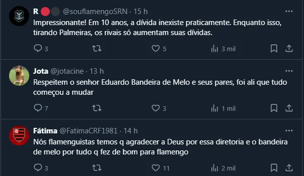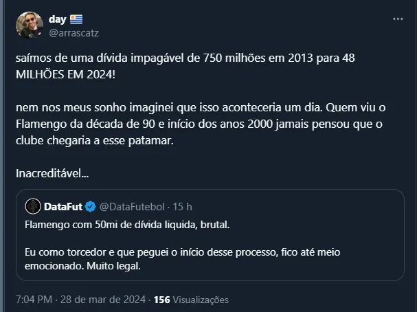 Isto é, segundo informações do balanço do Clube divulgadas pelo GE, o Flamengo ainda tem R$ 92,4 milhões a receber este ano. O valor é referente à porcentagens de negociações e mecanismos de solidariedade.
