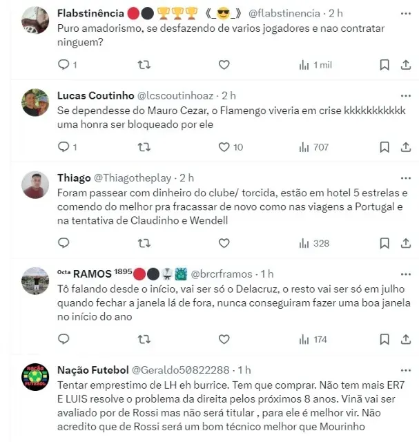 Opiniões da torcida do Flamengo sobre a informação de Mauro