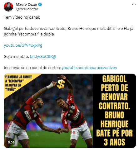 “A renovação do Gabigol deve acontecer por mais quatro anos. Ele vai ganhar um aumento? Vai. Vão ter bônus por metas. Isso que está sendo encaminhado. Após o final do primeiro semestre de 2024, ele pode assinar um pré-contrato e sair de graça. O jogador custou cerca de 17 milhões de euros. O Flamengo tem que reter o jogador e fazer um investimento maior”, informou o jornalista.