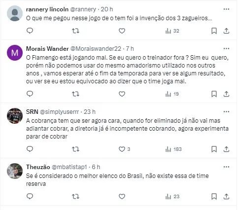 Na sequência, ele demonstrou como, na prática, poupara jogadores acabou sendo um risco assumido: “O banco do Flamengo contra o Bolívar só tinha garotos, à exceção do Luiz Araújo. A atuação foi ruim, a estratégia não funcionou, tudo deu errado”, completou, em análise no programa Posse de Bola, do Uol Esporte.
