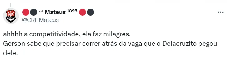 “É algo de alta complexidade. A gente trabalhava com três meses inicialmente, para meados de maio, mas está conseguindo acelerar. Isso é uma vitória de todo o time do Flamengo, de toda a comissão técnica e todo o departamento de saúde e rendimento do Flamengo”, completou.