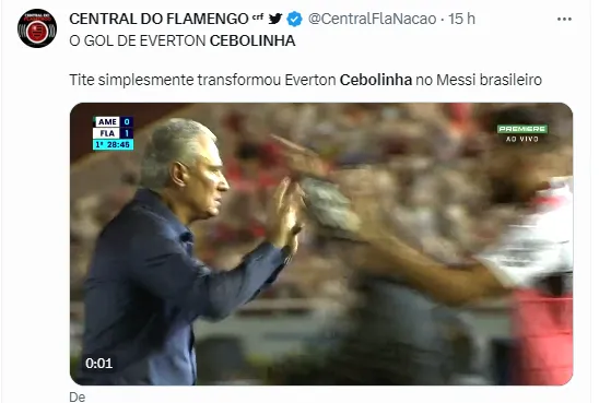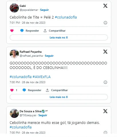 “Cebolinha merece esse gol, tá jogando demais”; “Cebolinha de Tite = Pelé 2”; “Messi brasileiro”; foram alguns dos comentários que os torcedores do Flamengo fizeram sobre o atacante.