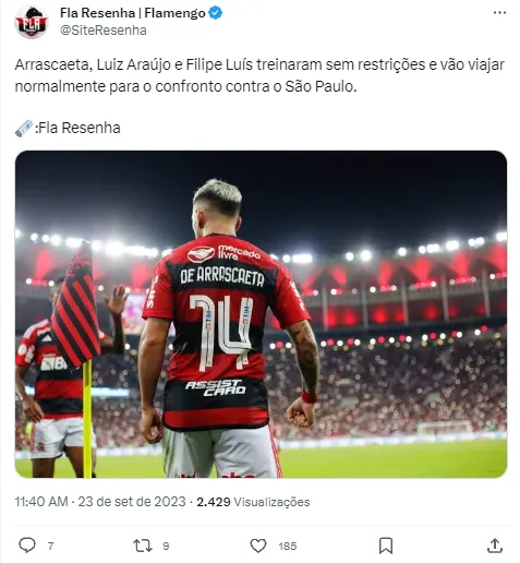 Isso porque segundo a página Fla Resenha, Filipe Luís estará junto da delegação do Flamengo após treinar sem restrições. O lateral-esquerdo vive a reta final da carreira, encarando inúmeros problemas físicos apenas em 2023. O defensor conseguiu apresentar ainda nesta temporada que segue tendo enorme categoria, com uma saída de jogo incomparável. Entretanto, a vitalidade não é mais a mesma.
