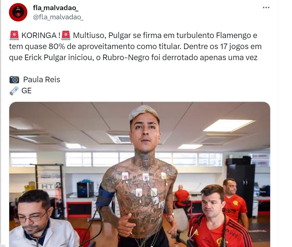 E um jogador essencial no esquema de Sampaoli é o polivalente Erik Pulgar. Com multifunções em campo, o volante chileno de 29 anos já atuou tanto no meio-campo como na zaga. O Rubro-Negro Carioca perdeu apenas um jogo e tem 79% de aproveitamento quando o jogador é titular, segundo levantamento do Globo Esporte.