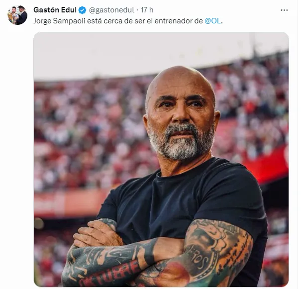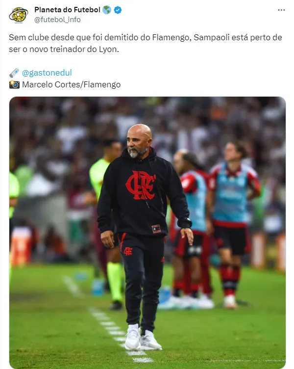 Livre no mercado, o comandante argentino pode ter um destino surpreendente. Segundo informações apuradas pelo jornalista Gastón Edul, Sampaoli estaria na mira do Lyon para o ano que vem. O time francês é comandado pelo empresário John Textor, que também é dono do Botafogo.
