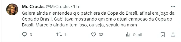 “No primeiro jogo, dei um carrinho e ele olhou diferente. No segundo jogo, ele botou a mão no patch de campeão da Copa do Brasil. Aí eu pensei ‘nada a ver’. Levantei a bermuda (mostrando a tatuagem da Champions League) e não falei nada. A resenha dele foi ‘o que tu fez lá fora, fica lá fora’. Agora eu já fiz aqui também”, destacou.