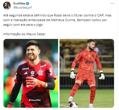 Entre as situações, uma que pode se destacar foi a do goleiro Rossi. Conforme informações do jornalista Mauro Cezar, o atleta argentino faria sua estreia pelo Mengão contra o Furacão, porém, com a volta antecipada de Matheus Cunha, que estava na Seleção Olímpica, Sampaoli mudou de ideia e Rossi ficou no banco.
