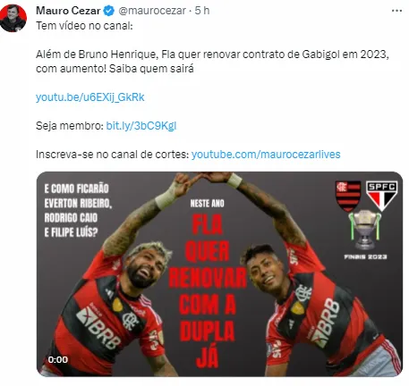 Em vídeo publicado em seu canal no YouTube, o jornalista Mauro Cezar alertou os flamenguistas para a possibilidade de que um goleiro badalado do Rubro-Negro Carioca seja negociado. Ele opinou sobre a situação e apontou que por ter mercado, o jogador poderia ser envolvido em uma negociação na próxima janela de transferências do futebol brasileiro.