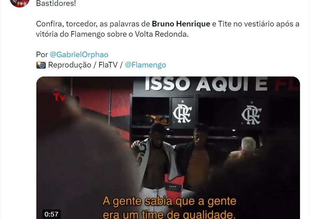 A Fla TV, tevê oficial do Mengão no YouTube, flagrou o papo reto de Bruno Henrique com o restante do elenco na frente de Tite. Certamente, o ídolo rubro-negro sabe qual o seu papel dentro do plantel.