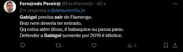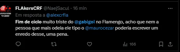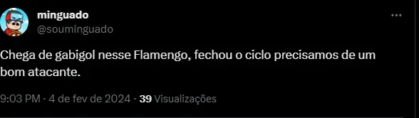 “Nem pra bater pênalti serve mais, chega de Gabigol, acabou”, “Esse cara PRECISA sumir desse clube no final do ano”, e “Chega de Gabigol nesse Flamengo, fechou o ciclo precisamos de um bom atacante”, foram alguns comentários.