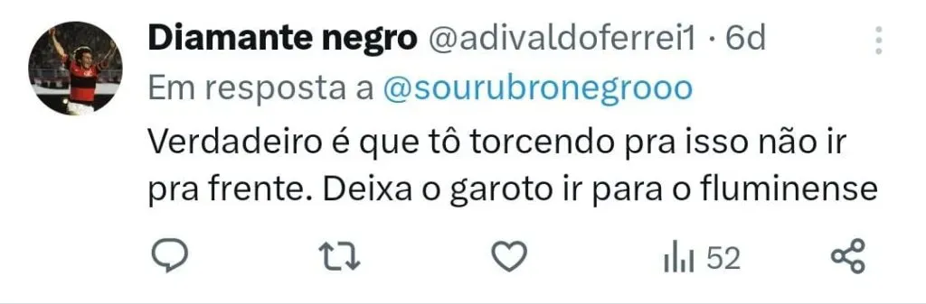 “Entre Flamengo e Fluminense, com todo respeito, eu estou falando de grana, de dinheiro, não estou tomando partido de nenhum lado… Estou falando de dinheiro. O Flamengo tem muito mais estrutura financeira para pagar mais, para cumprir mais, para ganhar mais, do que o Fluminense.”, comentou.