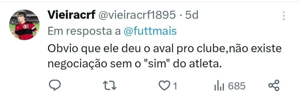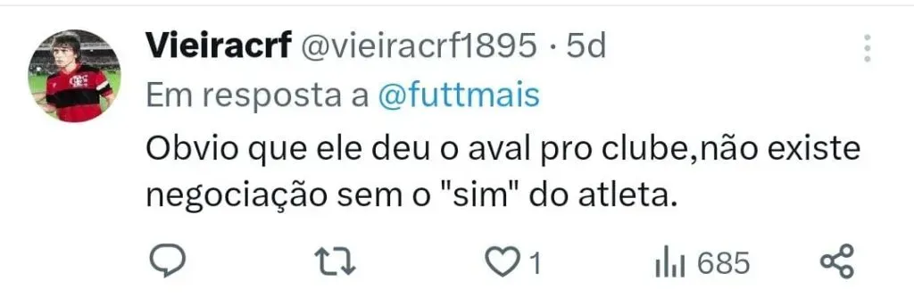 O comunicador declarou que o jogador deveria ter outras prioridades, sendo a principal delas a questão financeira, por isso o Flamengo seria o destino mais lógico para o atacante, na visão do jornalista.