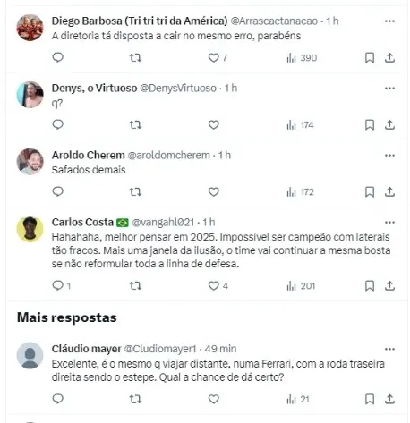 A questão é que a diretoria ainda não está 100% satisfeita, tanto que existem inúmeras negociações em andamento, como nos casos de Luiz Henrique, do Betis, Matías Viña, da Roma, além de Léo Ortiz, do Red Bull Bragantino.