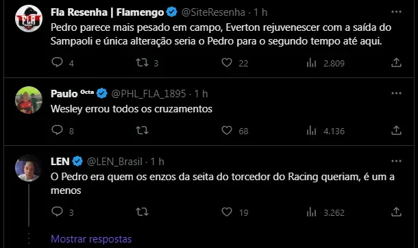 Dito isso, apesar de ter conseguido finalmente balançar as redes, o camisa 9 foi substituído logo na sequência, juntamente com Wesley e Thiago Maia. Este último, inclusive, talvez tenha sido o mais criticado pela Nação na web. Vale a pena destacar que a boa atuação de Pulgar também ajudou a deixar o futebol de Thiago ainda pior. Assim, confira algumas reações na web não aliviando para o quarteto mencionado acima: