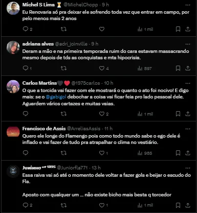 As informações recentes foram de que quando esteve punido, o treinador flamenguista deu total apoio ao ex-camisa 10, mas Neto questionou o fato do clima atual de Gabi e se o comandante dará novas chances e oportunidades para o atleta após o ocorrido.