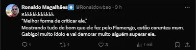Além disso, o ex-jogador e apresentador do programa Os Donos da Bola já levantou a possibilidade de saída de Gabriel Barbosa, já que seu contrato acaba no fim deste ano e ele já está em clima no CRF. “Ele sabe disso no ambiente do dia a dia. Qualquer clube que o Gabigol for, ele chega como ídolo. Ele é jovem, não vai querer se indispor com o Tite. E não vai jogar com o treinador”, comentou.