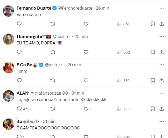 "São dois jogos, 180 minutos, mas a gente sabe que o primeiro jogo também diz muito. Se estivermos concentrados, aproveitando o fator casa, fazer valer a pena jogando no Maracanã, isso tem uma grande vantagem para nós diante da Nação, apesar do mando não ser nosso. E se Deus quiser, construir uma boa vantagem para o jogo de volta. (…) Assim, que a Nação possa continuar nos apoiando como tem sido. A gente vê uma conexão muito importante entre torcida e time dentro de campo”, afirmou.