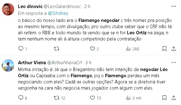 Enquanto a novela segue, a torcida flamenguista nas redes sociais se manifesta, defendendo que o Flamengo não esqueça a postura adotada pelo Bragantino nessa negociação.