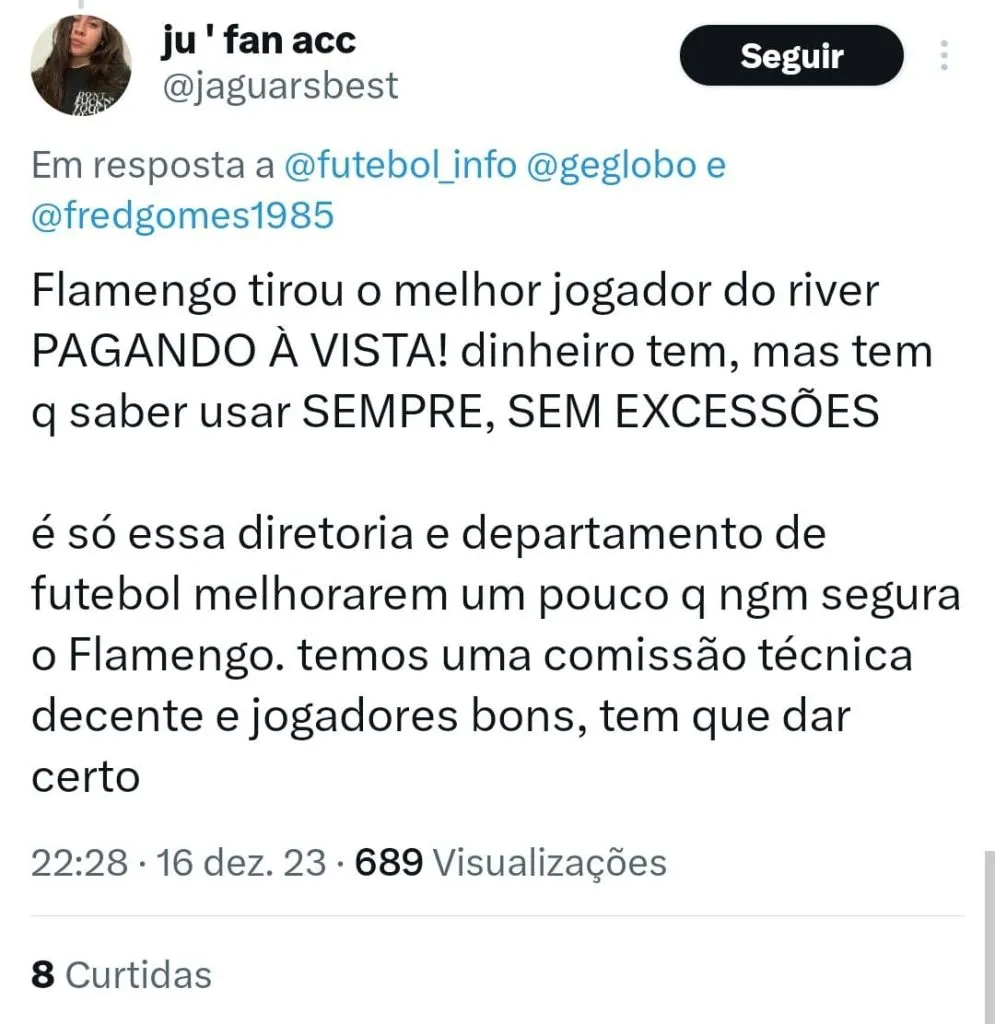 Quem já chegou a um acordo e deve ser anunciado nos próximos dias é o meio Nicolás De La Cruz, de 26 anos. O uruguaio era um dos principais destaques do River Plate, da Argentina. O Flamengo pagou 16 milhões de euros, cerca de R$ 79 milhões de acordo com a cotação atual.