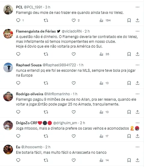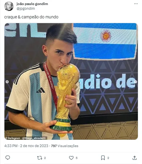 Mesmo com parte da torcida desconhecer a qualidade do jovem Hermano, os fãs mais antenados lembraram que Almada esteve na delegação campeã da Copa do Mundo no Qatar e quem vem apresentando um futebol de qualidade há tempos.