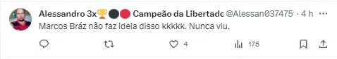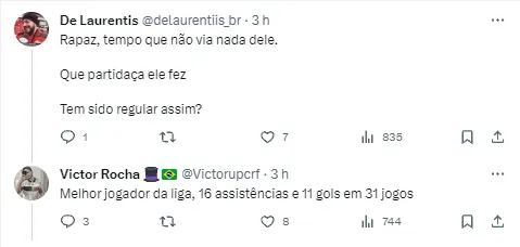 Após o usuário do Twitter Victor Rocha compartilhar uma boa atuação do craque argentino, o vídeo com lances do e-mail atingiu mais de 12 mil visualizações e 40 comentários de flamenguistas.