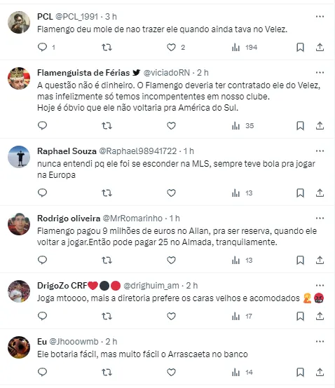 Ele seria um bom reserva para Arrascaeta, aparecendo até como um possível futuro postulante a vaga de titular. Não existe nenhuma movimentação oficial do Clube pelo jogador, mas a torcida já fez sua parte.