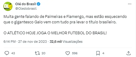 Caso o Flamengo vença, o Rubro-Negro vai a 66 pontos, o que pode render até a liderança se o Palmeiras perder. Já o Galo, vencendo, iria a 63. Fazia tempo que o Brasileirão não era disputado por tantos times, o que aumenta a emoção.